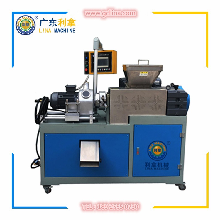 3、改性造粒機(jī):為造粒主機(jī),其功能是將密煉機(jī)混煉好以后的膠料經(jīng)過(guò)二次分散推送至切粒模頭切粒,因在推送過(guò)程中需要保證膠料的溫度所以一般設(shè)有五個(gè)溫度控制區(qū),用以調(diào)節(jié)膠料溫度配合切粒機(jī)切粒成型;