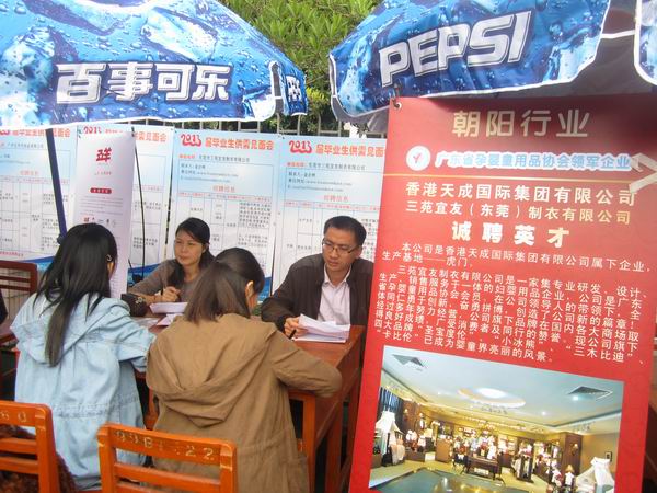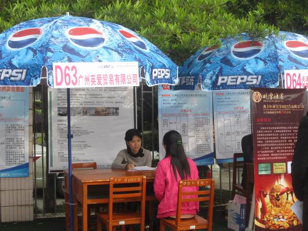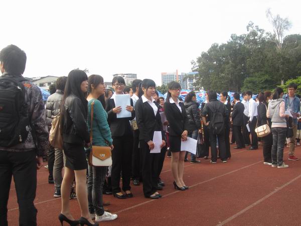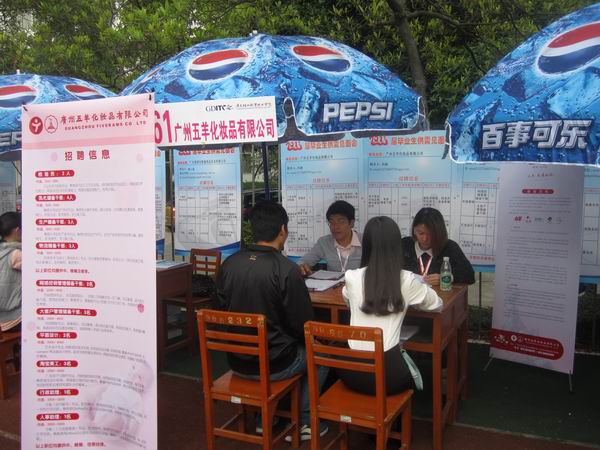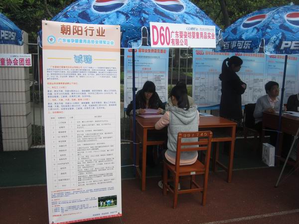 2012年12月8日上午,廣東輕工職業(yè)技術(shù)學(xué)院在廣州校區(qū)的足球場(chǎng)舉辦了一場(chǎng)2013屆近6000名畢業(yè)生供需見(jiàn)面會(huì)。為了加強(qiáng)學(xué)校和用人單位的聯(lián)系與合作,我協(xié)會(huì)牽頭組織了幾家發(fā)展?jié)摿Υ蟮钠髽I(yè)參加了供需招聘活動(dòng),他們是:廣州英愛(ài)貿(mào)易有限公司,廣州五羊化妝品有限公司,廣東嬰姿坊嬰童用品實(shí)業(yè)有限公司,東莞市三苑宜友制衣有限公司等。
