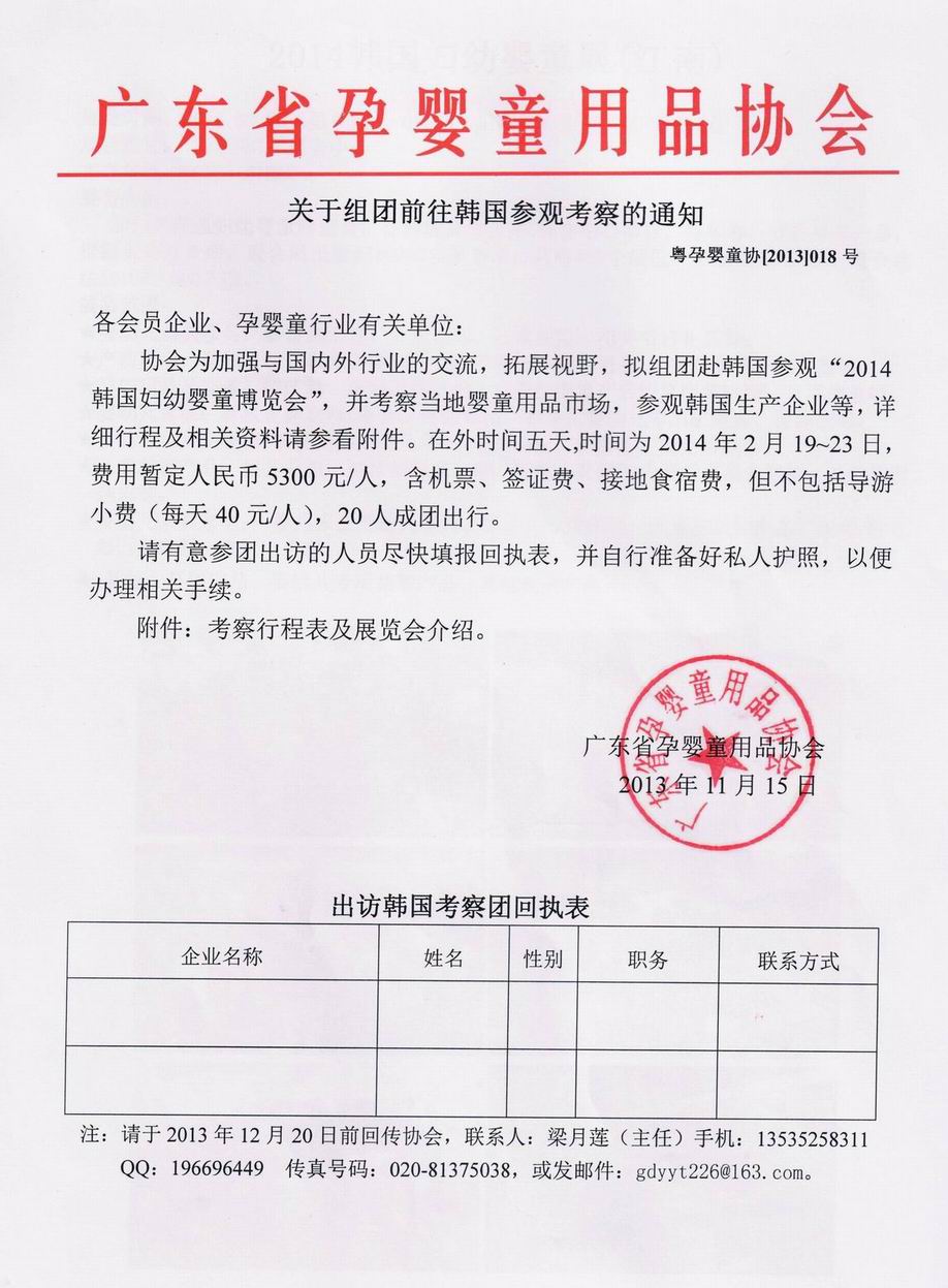 關于組團前往韓國參觀考察的通知