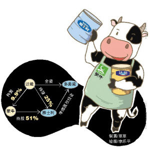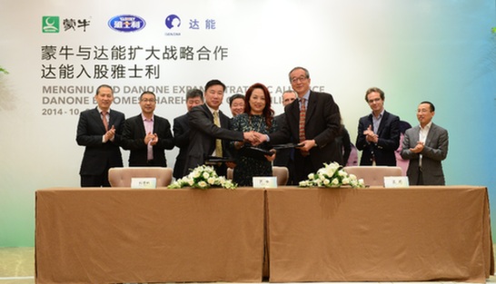 蒙牛、雅士利、達(dá)能于10月30日聯(lián)合簽署了一份股份認(rèn)購(gòu)協(xié)議。根據(jù)協(xié)議,達(dá)能將參與雅士利國(guó)際的定向增發(fā),增發(fā)價(jià)格為每股3.7港元。如交易成功,達(dá)能將以25%的股份成為雅士利第二大股東;交易完成后,蒙牛仍持股51%,為雅士利的控股股東。同時(shí),達(dá)能也是蒙牛的第二大股東。