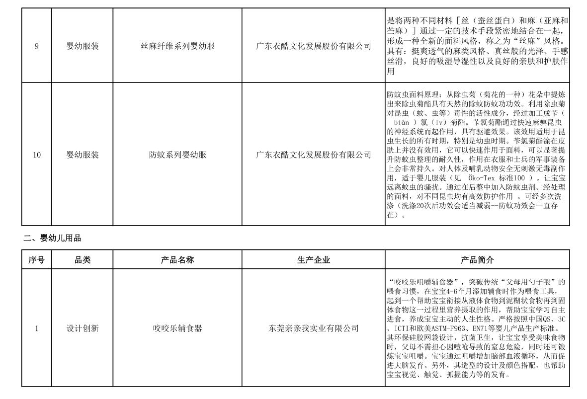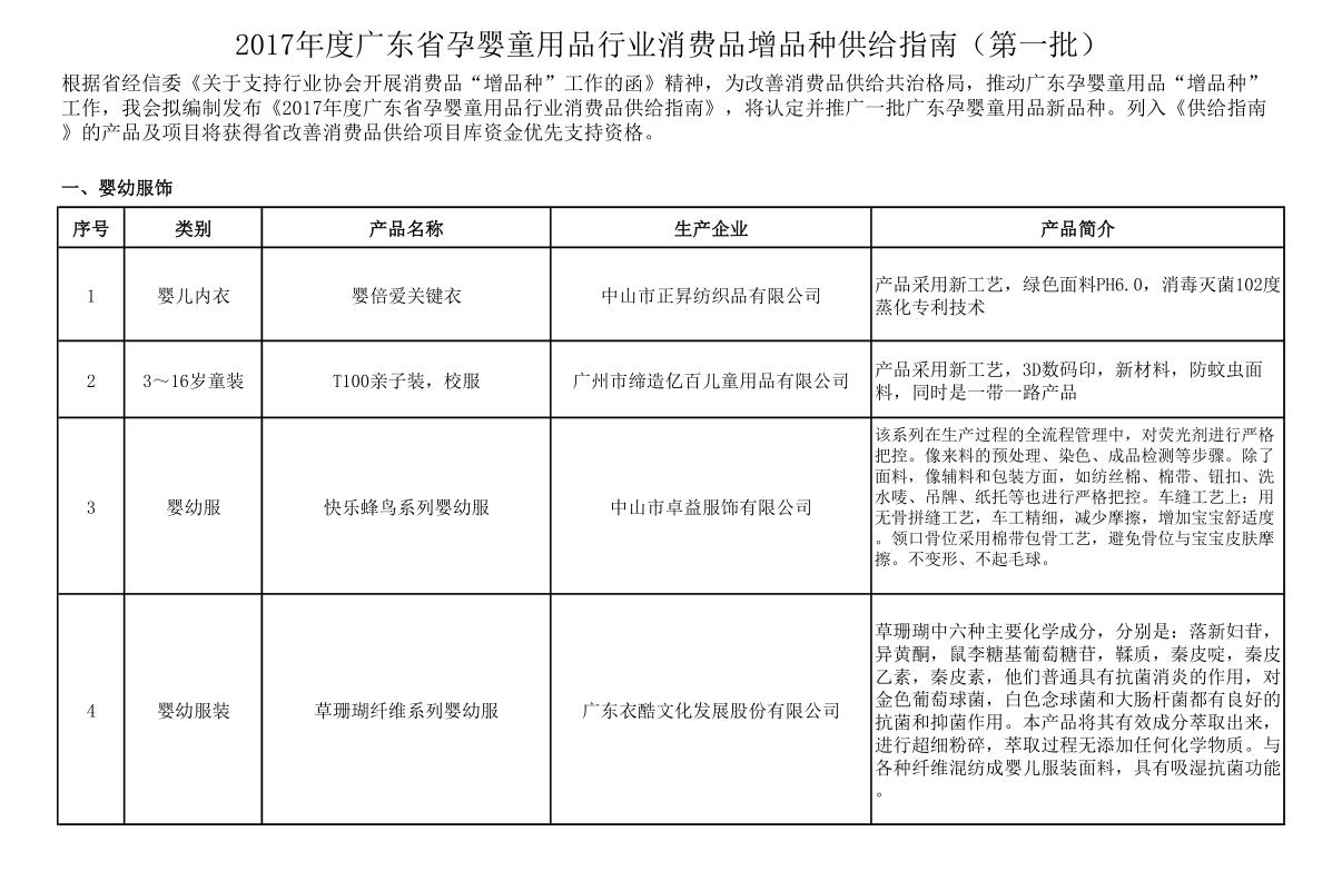2017年度廣東省孕嬰童用品行業(yè)增品種供給指南(第一批)