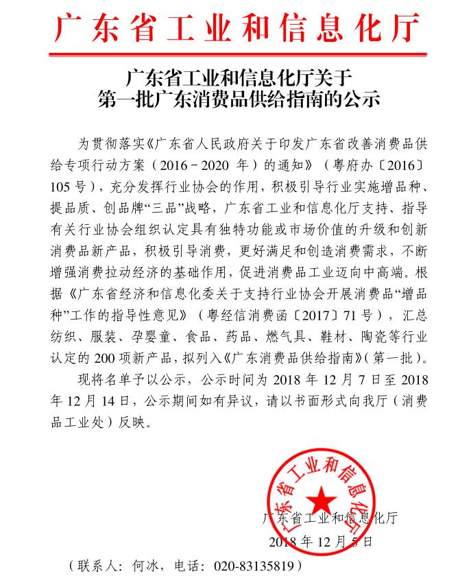 ·廣東省工業(yè)和信息化廳關于 第一批廣東消費品供給指南的公示