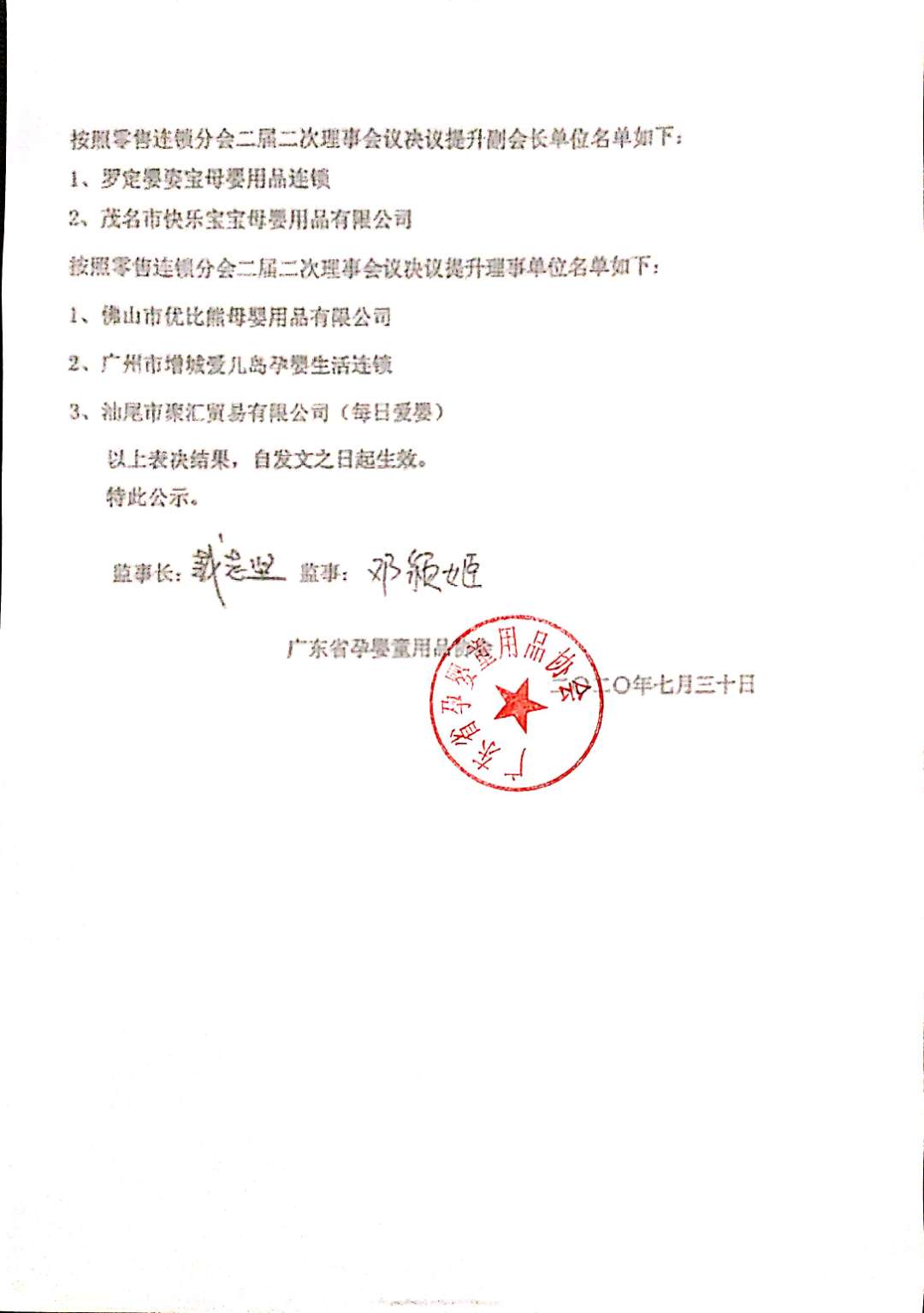 ·廣東省孕嬰童用品協(xié)會第三屆第二次理事會通訊會議 暨零售連鎖分會二屆二次理事會決議紀(jì)要